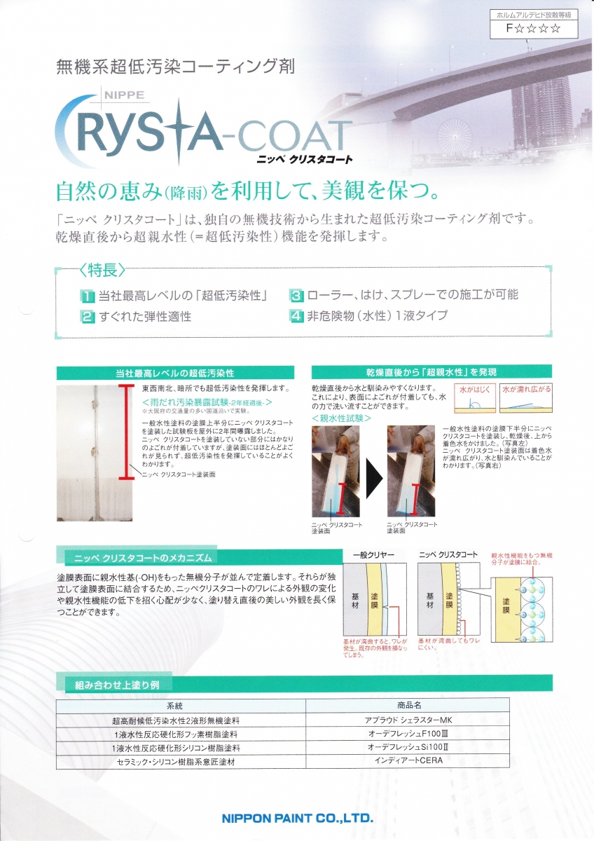 海沿いなので、外壁はシリコン塗料に日本ペイントクリスタコートというトップコートでカビや汚れとオサラバ。