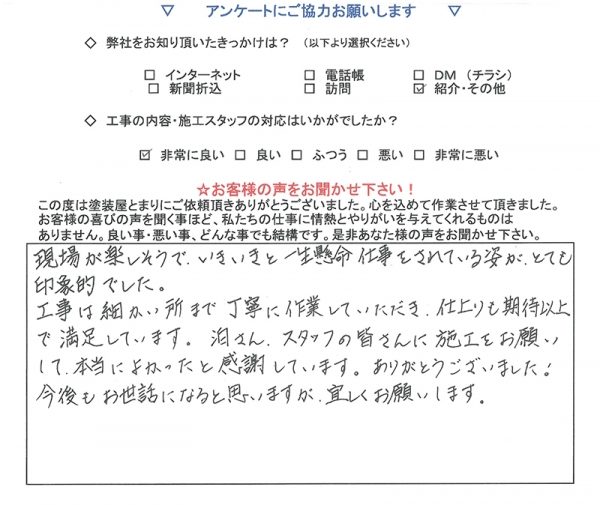 又、作業期間中の天候による工程変更においても、その都度、ご連絡をいただき、安心しておまかせできる状況でした。
